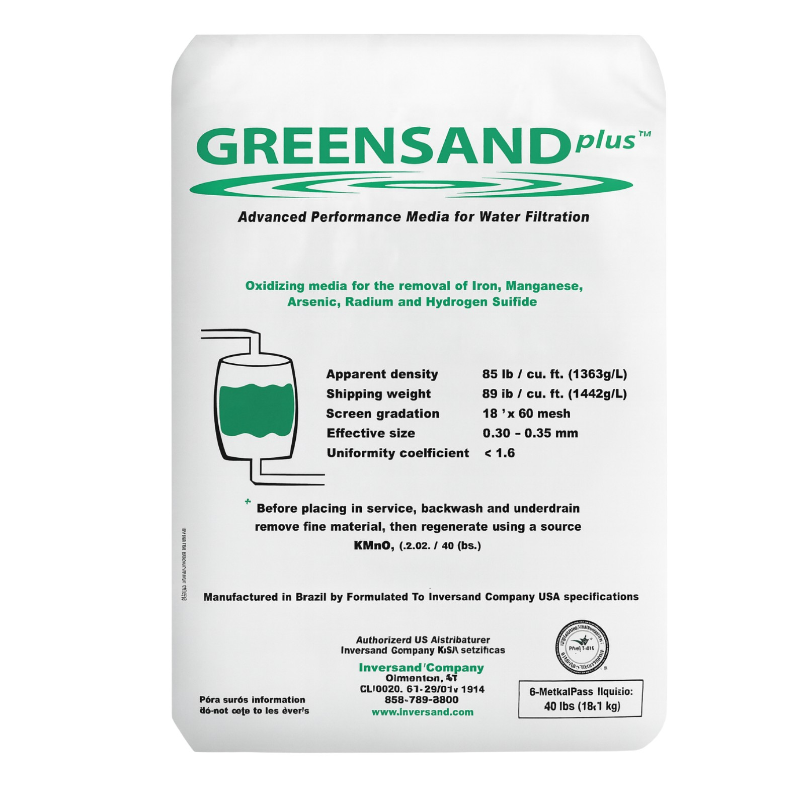 ARENA VERDE DE MANGANESO (GREENSAND) REYNOR® EN SACO DE 40.37 LB (0.5 PIES CÚBICOS). ESTE MEDIO FILTRANTE DE ALTO DESEMPEÑO ES LA SOLUCIÓN LÍDER PARA LA ELIMINACIÓN DE METALES PESADOS Y GASES DISUELTOS EN EL AGUA, UTILIZANDO UNA BASE DE GLAUCONITA ENRIQUECIDA CON ÓXIDOS DE MANGANESO PARA PURIFICAR EL SUMINISTRO MEDIANTE OXIDACIÓN Y RETENCIÓN FÍSICA.