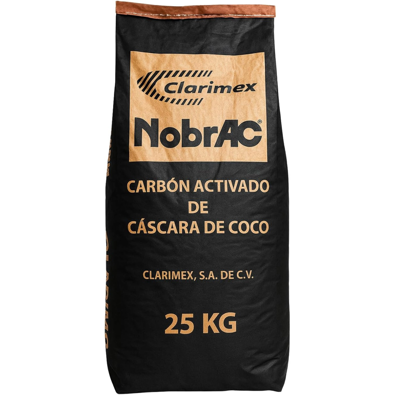CARBÓN ACTIVADO CLARIMEX® NOBRAC – SACO DE 25 KG. ESTE MEDIO FILTRANTE DE ALTO DESEMPEÑO ES EL ESTÁNDAR EN LA INDUSTRIA PARA LA PURIFICACIÓN QUÍMICA DEL AGUA. GRACIAS A SU AVANZADA ESTRUCTURA POROSA Y SU ELEVADA ÁREA SUPERFICIAL, EL CARBÓN NOBRAC ELIMINA DE MANERA INMEDIATA EL CLORO RESIDUAL, CONTAMINANTES ORGÁNICOS, ASÍ COMO LOS SABORES Y OLORES QUE AFECTAN LA CALIDAD DEL LÍQUIDO, GARANTIZANDO UN AGUA CRISTALINA Y SEGURA.